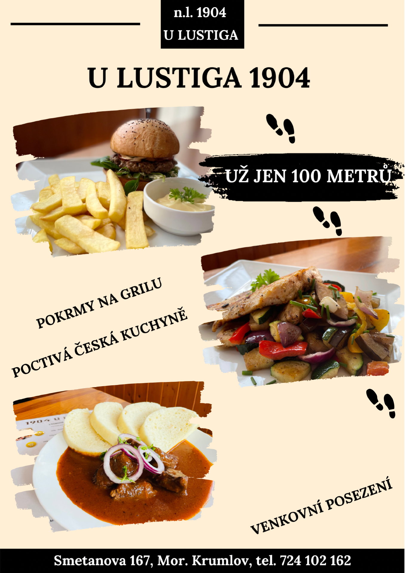 Restaurace v Moravském Krumlově. Posezení venku - zahrádka, vhodné na oslavy. Grilování, polední menu, catering.