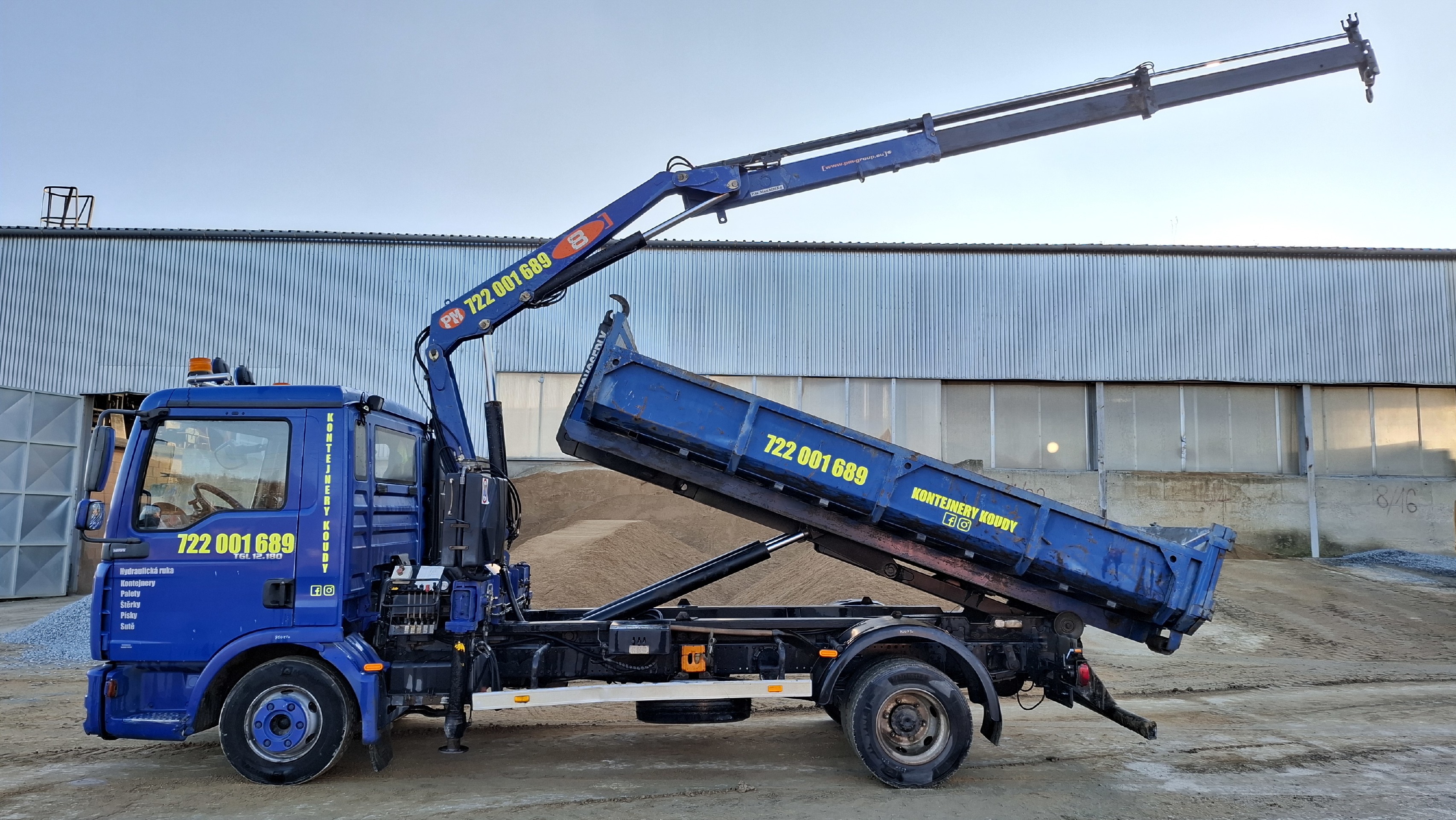 Nabízím přistavení kontejnerů na odvoz sutí, dovoz štěrků, písků, betonu a paletová doprava (hydraulická ruka)