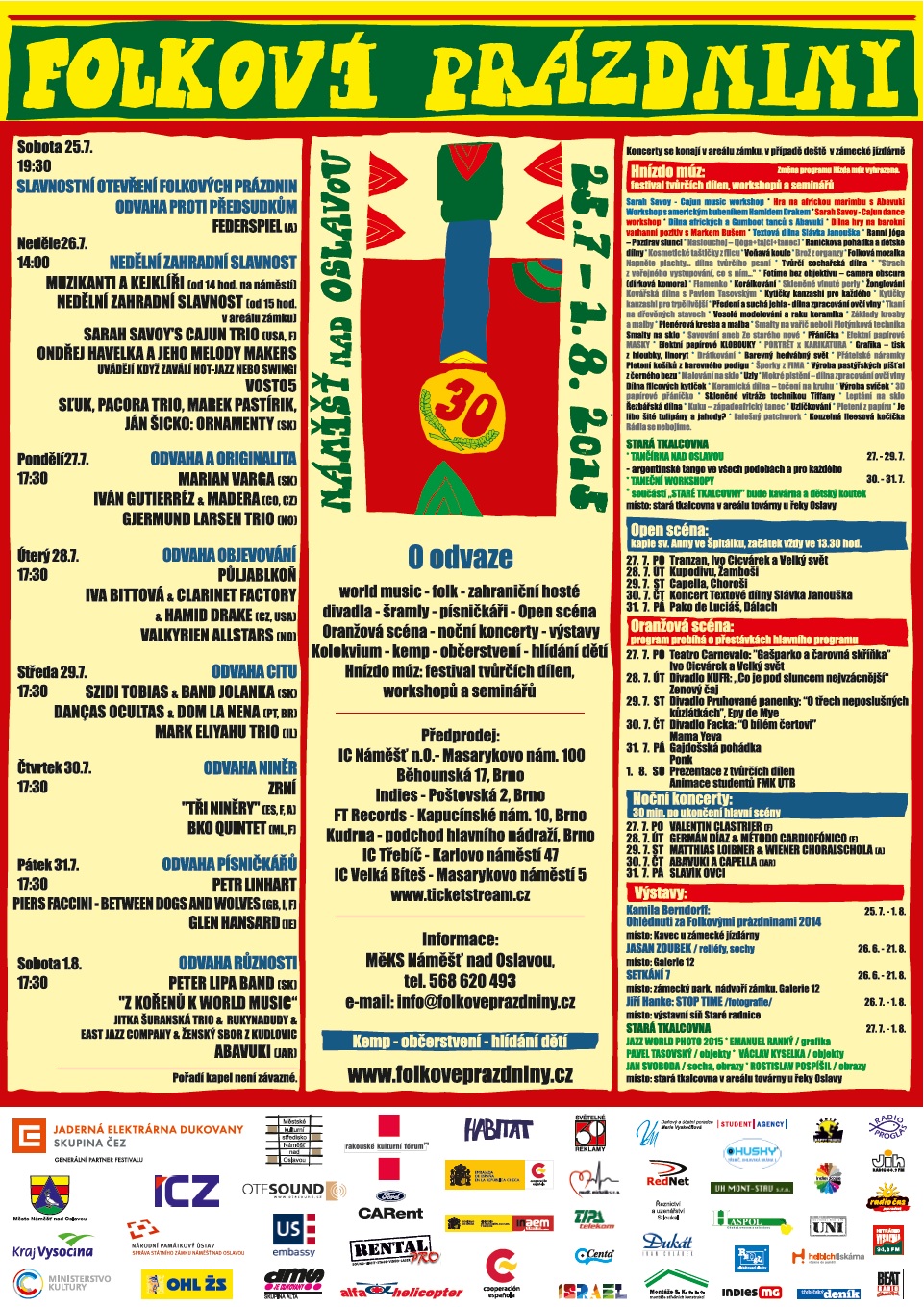 A to vše v působivém romantickém prostředí náměšťského renesančního zámku s parkem a v samotném historickém středu města. Vstupenky lze stále zakoupit na tradičních místech. Více na www.folkoveprazdniny.cz